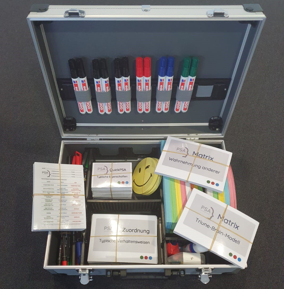 - Exklusiver PSA-Trainerkoffer, u.a. mit verschiedenen PSA-Kartenspielen und PSA-Materialien